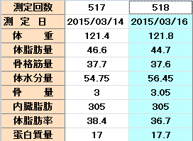 あれ?体重が2日間で1.15キロ減っている。