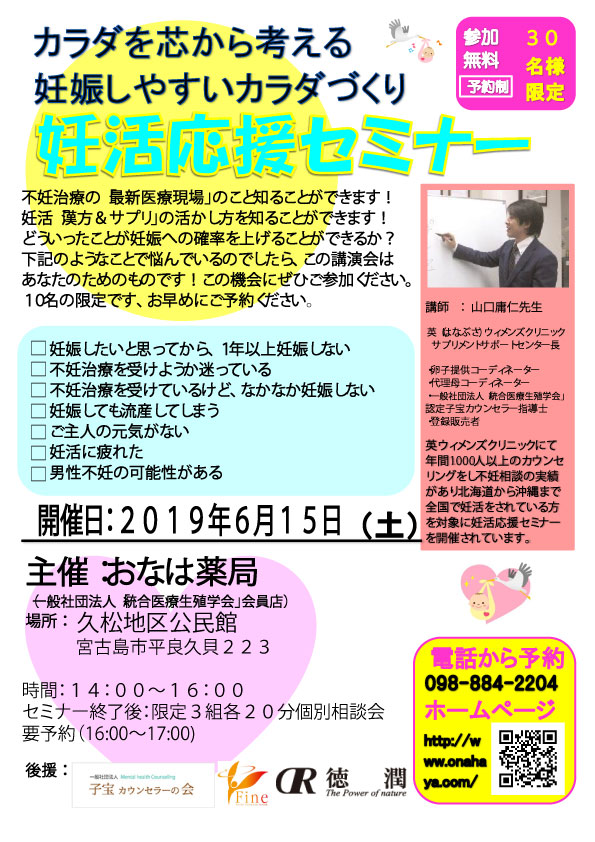 6月15日 妊活セミナー 宮古島 要電話予約:098-884-2204