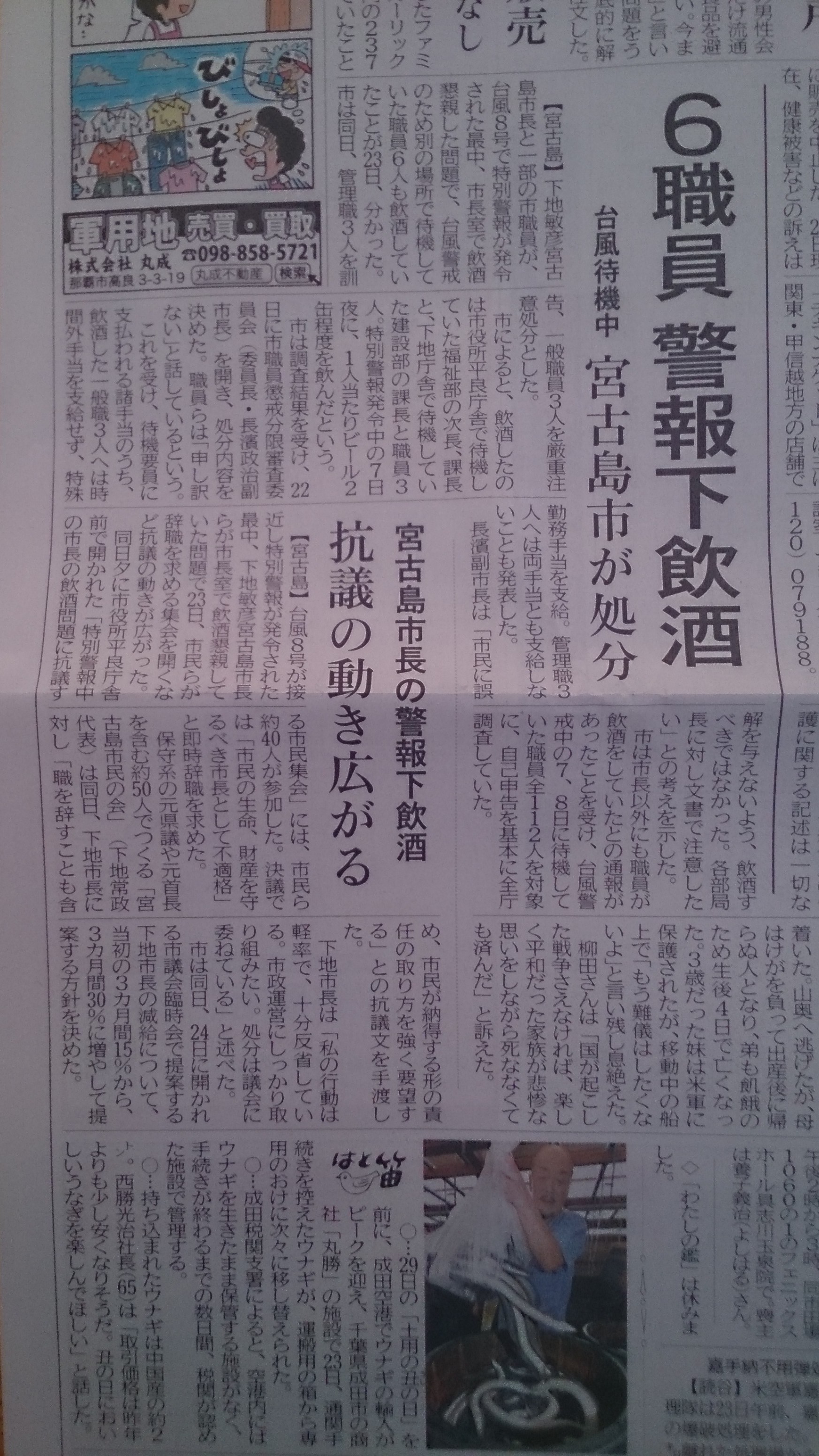 ニュースを読んで 沖縄県琉球新報宮古島市長辞職 宮古島市長、警報下飲酒 おはようございます。 那覇市栄町にあるおなは薬局 ダイエットカウンセリングをしている小那覇安之(ユキちゃん)です。 台風8号の接近で特別警報が発令されている中 市長室で飲酒懇親していたそうです。 いくらなんでも、それはないでしょう 市長の判断が必要なときもあるでしょう、そんな時に飲酒なんて ほんとに政治家にはがっかりさ... 2014年7月24日 小那覇 安之